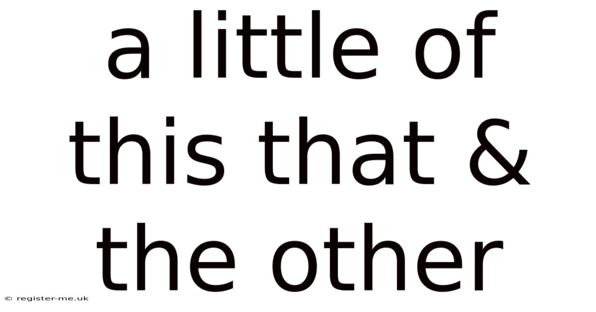 At its core, a little of this that & the other represents the intellectual freedom to explore widely without the pressure of immediate mastery. Today, that same eclectic approach remains highly relevant. Whether you are a student navigating course selections, a professional adapting to industry shifts, or simply someone seeking mental enrichment, allowing yourself to sample different disciplines prevents intellectual stagnation. Now, the modern world rewards individuals who can synthesize ideas across boundaries. Still, they did not isolate themselves in narrow academic silos; instead, they studied art alongside mathematics, observed nature while experimenting with mechanics, and read philosophy while practicing diplomacy. Historically, some of the most influential thinkers thrived on this exact principle. When you intentionally gather a little of this that & the other, you are not scattering your focus; you are building a mental toolkit that adapts, connects, and innovates And that's really what it comes down to..