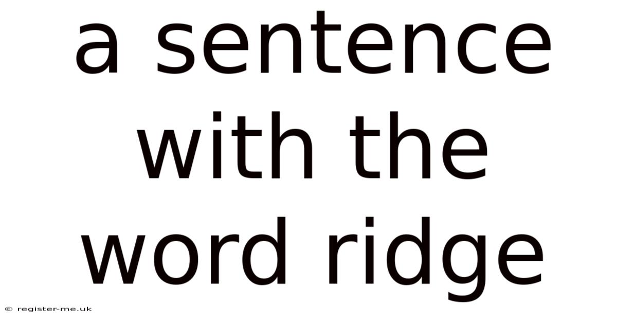 A well‑crafted sentence with ridge should balance clarity, imagery, and relevance. Here’s a quick formula you can adapt: