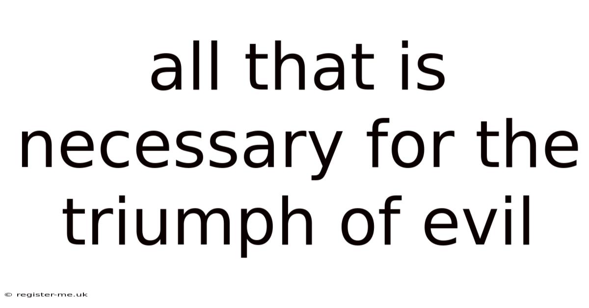 The phrase "All that is necessary for the triumph of evil is for good men to do nothing" is often attributed to Edmund Burke, a British statesman and philosopher of the 18th century. Throughout history, this idea has been proven true time and again, from the horrors of the Holocaust to the ongoing struggles against systemic injustice and oppression. This powerful statement highlights the critical role that individual action—or inaction—plays in shaping the moral and ethical landscape of society. Understanding the mechanisms by which evil triumphs, and the importance of proactive resistance, is essential for building a more just and compassionate world.