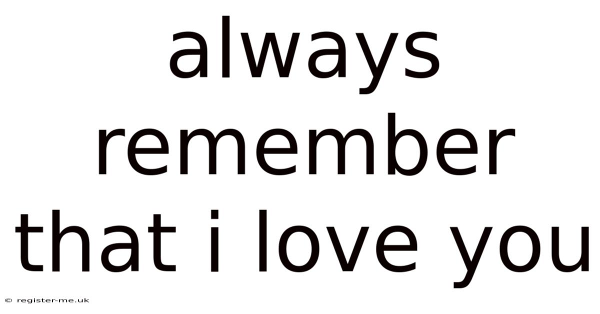 The phrase "always remember that I love you" transcends mere sentimentality; it is a cornerstone of resilient, enduring love. Its power lies in its simplicity and its demand for active, consistent embodiment. By transforming this declaration into a living practice – a ritual of presence, a lifeline across distance, and a model of vulnerability – we build relationships fortified against life's inevitable shifts. We create sanctuaries of trust where love is not just felt, but profoundly, visibly known. In prioritizing this conscious articulation of devotion, we cultivate a legacy of connection that outlives us, proving that the most profound gift we can give and receive is the unwavering assurance that we are, and always will be, cherished.