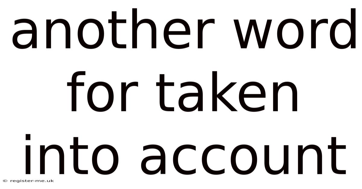 Considering alternatives to "taken intoaccount" is crucial for effective communication, ensuring clarity and avoiding unnecessary repetition. Practically speaking, understanding these options allows writers and speakers to tailor their language precisely to the context, whether in formal reports, casual conversation, or persuasive arguments. Day to day, this article explores a comprehensive range of synonyms and phrases that convey the same essential meaning: acknowledging something as relevant or important when making a decision, assessment, or plan. By expanding your vocabulary with these alternatives, you enhance the precision and impact of your message, ensuring your points are fully recognized and integrated And it works..