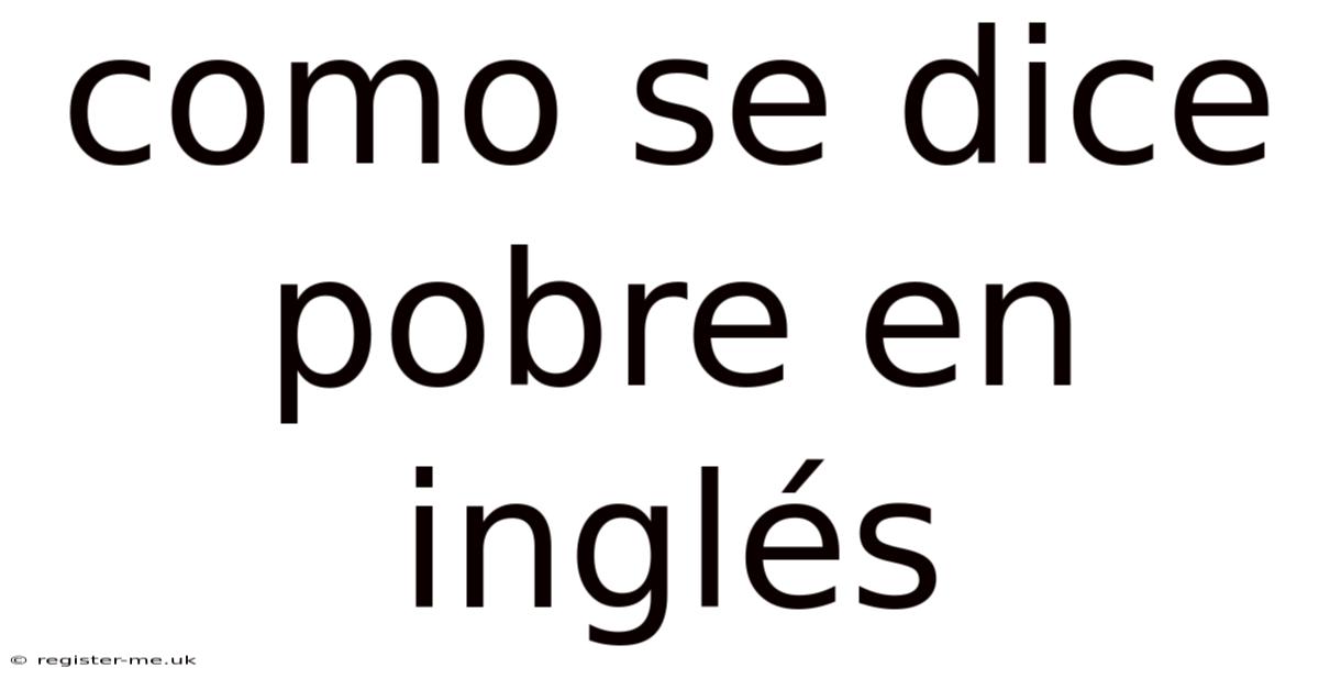 Cómo se dice "pobre" en inglés: Guía completa para entender y usar la palabra correctamente