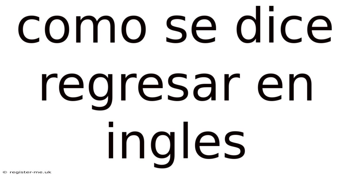 Pulling it all together, understanding how to say "como se dice regresar" in English is a valuable skill that supports your learning and communication. Whether you’re traveling, studying, or simply chatting with friends, being able to express the idea of returning will make your interactions more effective and engaging. By exploring different variations, practicing regularly, and paying attention to context, you can master this phrase and use it with ease. This article has provided you with a thorough look to help you achieve that goal, ensuring your English is both precise and expressive.