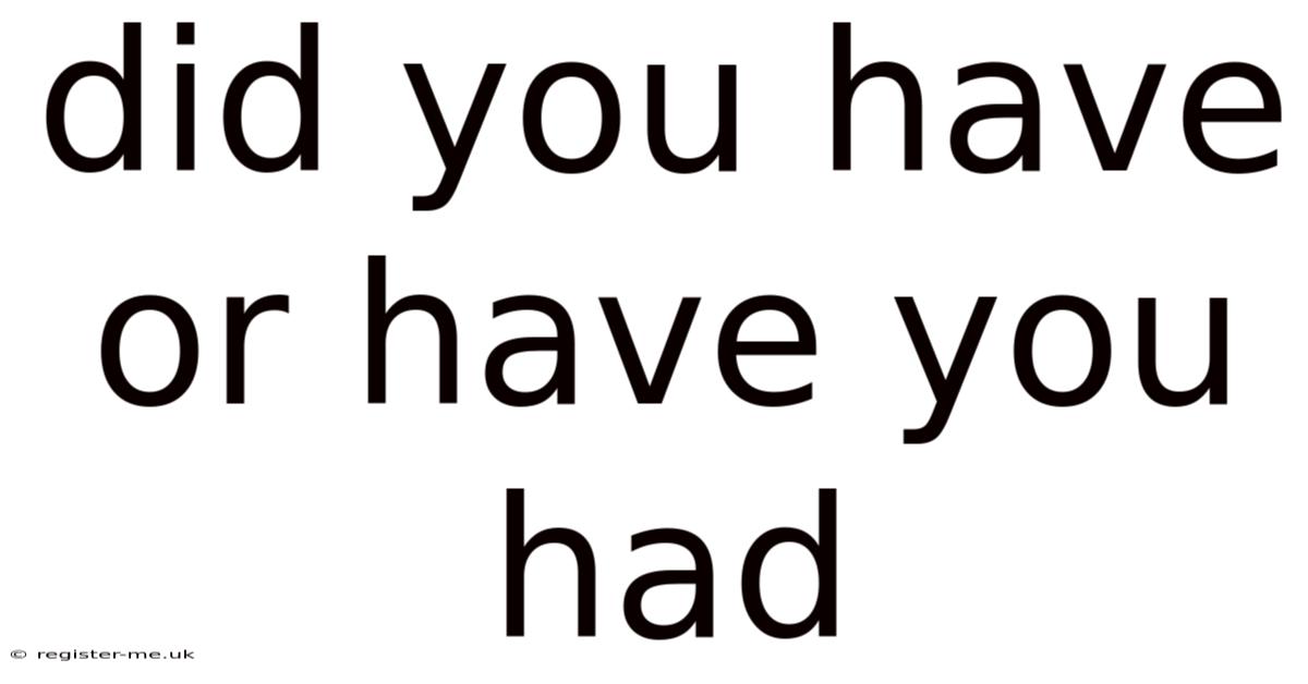 When you’re unsure whether to say did you have or have you had, the answer depends on tense, question structure, and the nuance you want to convey. This article breaks down the grammar, offers clear examples, and answers the most common questions, helping you use these phrases confidently in spoken and written English And that's really what it comes down to..