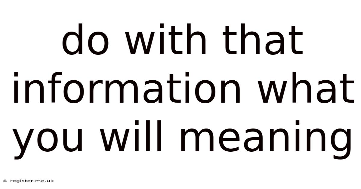 The phrase do with that information what you will is a widely recognized English expression that signals a deliberate boundary between delivering facts and prescribing action. When someone uses this statement, they are handing over knowledge while leaving interpretation, decision-making, and next steps entirely in your hands. Understanding the do with that information what you will meaning requires more than a surface-level dictionary definition; it demands attention to tone, context, and the subtle dynamics of human communication. That said, whether you encounter it in a professional briefing, a personal conversation, or a journalistic report, recognizing its true intent equips you to respond with clarity, emotional intelligence, and informed autonomy. This guide breaks down the linguistic roots, psychological drivers, and practical strategies for navigating this phrase effectively in everyday life.