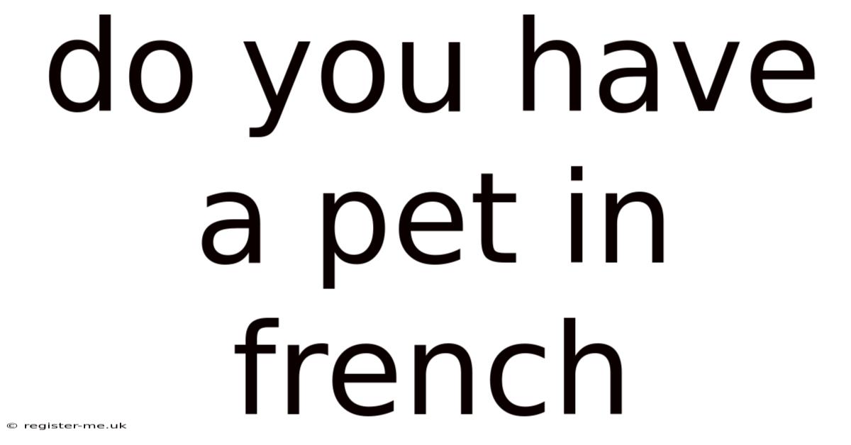 Imagine walking through a charming market in Provence or a cozy café in Montreal and striking up a conversation. Think about it: one of the most universal and heartwarming ways to connect with someone new is by asking about their furry, feathered, or scaly companion. Knowing how to ask "Do you have a pet?So " in French is your golden ticket to building rapport, showing cultural interest, and opening doors to richer interactions. This seemingly simple question is a cornerstone of everyday French conversation, and mastering it—along with its variations and cultural nuances—will instantly boost your confidence and communication skills. This guide will take you far beyond a simple translation, equipping you with the grammar, vocabulary, and cultural context to ask about pets like a native speaker Nothing fancy..