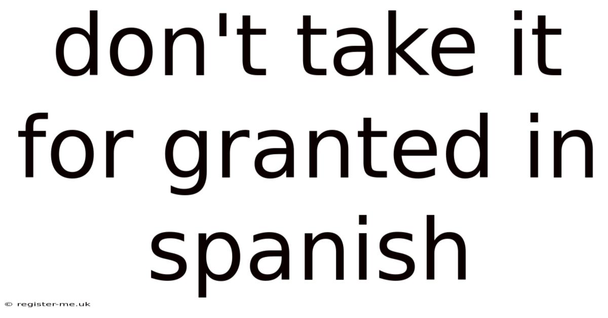 When we talk about learning a language, it’s easy to focus on the grammar rules or the vocabulary lists. Practically speaking, if you underestimate its challenges, you risk missing out on the rich opportunities it offers. In real terms, this phrase is more than just a reminder—it’s a call to pay attention to the subtle nuances, the cultural contexts, and the effort required to truly grasp the language. But let’s take a moment to reflect: don’t take it for granted in Spanish. Practically speaking, spanish is a vibrant, living language, and its strength lies in its complexity. This article explores why recognizing these challenges is crucial and how you can embrace them as part of your learning journey Not complicated — just consistent..