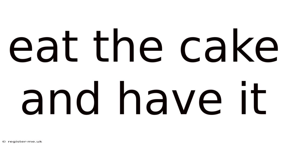 Relationships often require balancing individual needs with shared goals. The “eat the cake and have it too” approach might involve open communication to ensure both partners feel heard and valued. Take this: a couple might plan a budget that accommodates both savings and leisure activities, ensuring financial stability (eating the cake) and quality time together (having it too) Most people skip this — try not to..