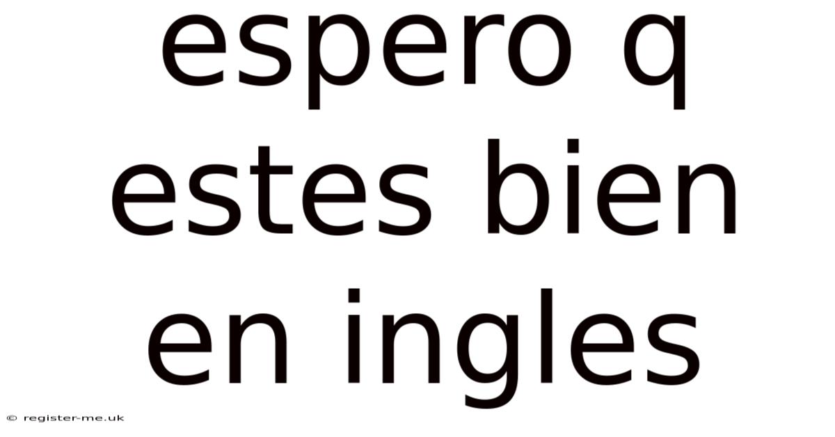Pulling it all together, whether you say "Espero que estés bien" in Spanish or "I hope you're well" in English, the message is universal: you care about the other person's happiness and health. Consider this: in a world where everyone is navigating their own challenges, these words can be a source of comfort and connection. So, the next time you reach out to someone, consider starting with a heartfelt wish for their well-being—it might just make their day a little brighter Easy to understand, harder to ignore..