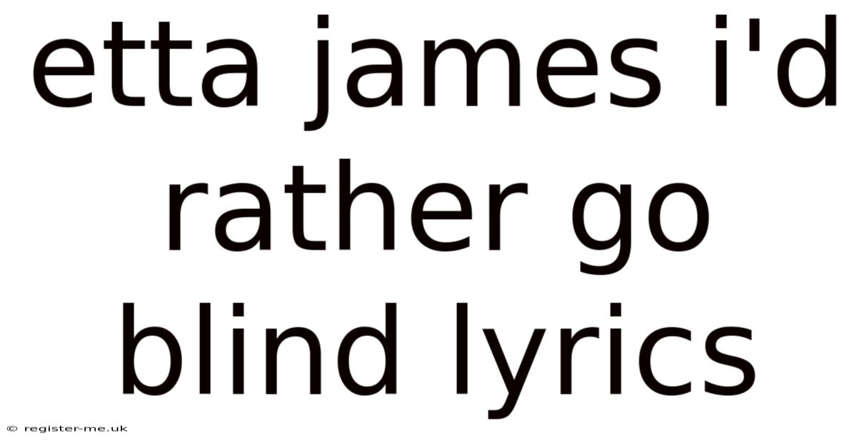 Understanding the song "Etta James' "I'd Rather Go Blind" is a journey into the heart of a powerful ballad that captures the longing and pain of a life lived on the edge. This article explores the meaning, background, and impact of this iconic track, offering insights into its emotional depth and lasting legacy. Whether you're a music lover or a fan of soulful storytelling, this piece will deepen your appreciation for this timeless song.
