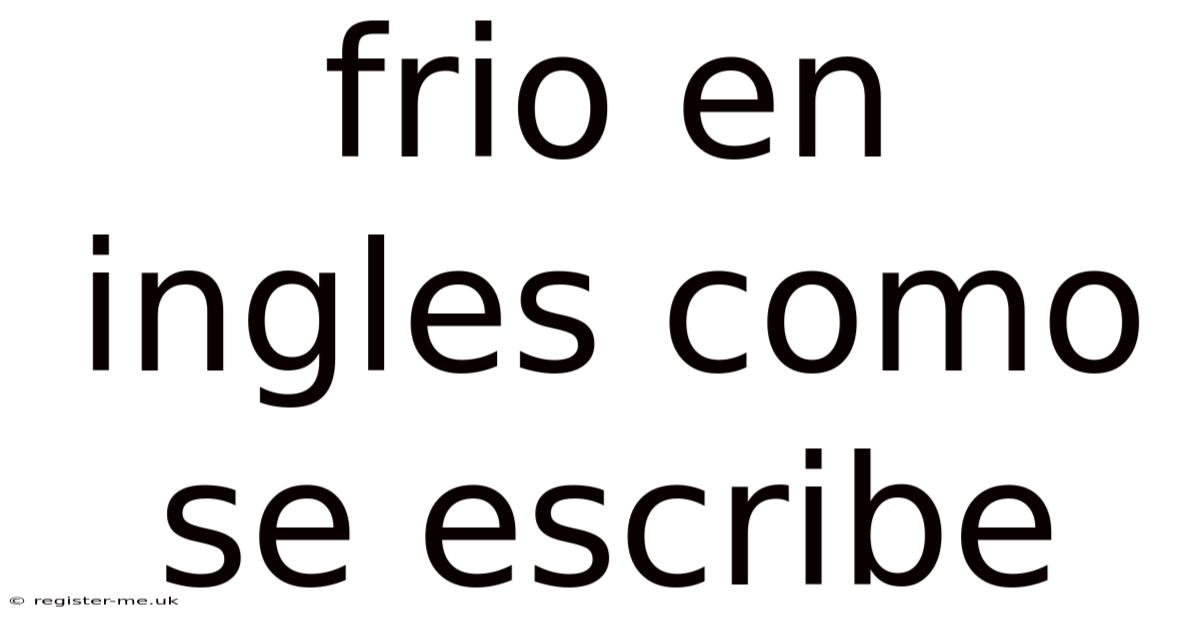 Understanding the term "frio" in English is essential for grasping its meaning and application in various contexts. Think about it: this article will break down the significance of "frio," how it is used in different settings, and its relevance these days. By exploring this topic, we aim to provide a comprehensive understanding that resonates with readers seeking clarity and insight Which is the point..