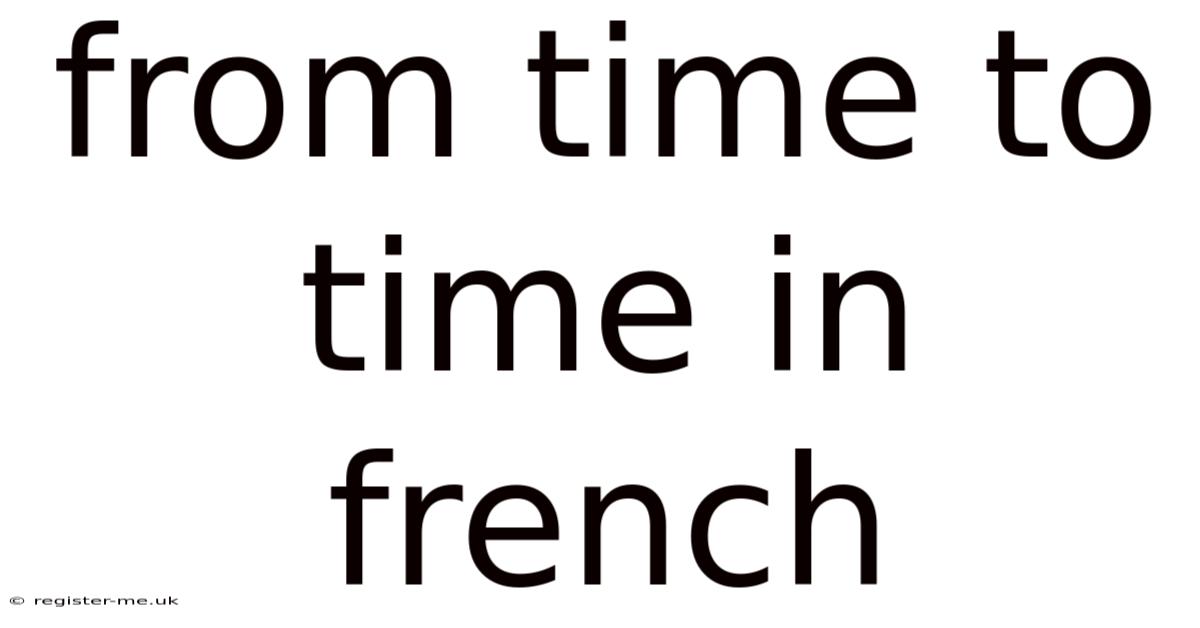 The phrase "from time to time" is a staple in English, used to describe actions or events that occur irregularly but repeatedly. Also, while seemingly simple, mastering this phrase opens doors to nuanced communication, allowing speakers to convey subtleties of frequency and timing. Day to day, in French, this concept is elegantly captured by the expression "de temps en temps" (deh tahn-zhahn tahn-zhahn). Whether you’re narrating a story, describing habits, or explaining routines, understanding how to use "de temps en temps" authentically is key to sounding like a native speaker Simple, but easy to overlook. Less friction, more output..