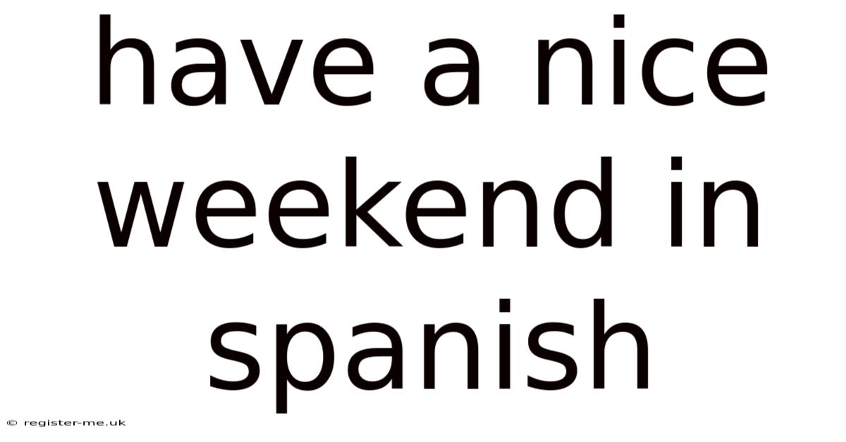 The simple, heartfelt wish to “have a nice weekend” is a universal bridge between colleagues, friends, and even strangers. Knowing how to express this wish appropriately shows cultural respect and instantly makes your interactions more warm and authentic. Mastering this phrase in Spanish does far more than add a line to your vocabulary list; it opens a door to the rhythms of la vida in Spanish-speaking cultures, where the weekend (el fin de semana or the colloquial el finde) is often a sacred time for la familia, los amigos, and simple disfrute. On the flip side, it marks the transition from the structured workweek to a pocket of personal time, rest, and connection. This guide will take you beyond a direct translation, exploring the nuances, cultural context, and practical application of wishing someone well in Spanish as the week ends And it works..