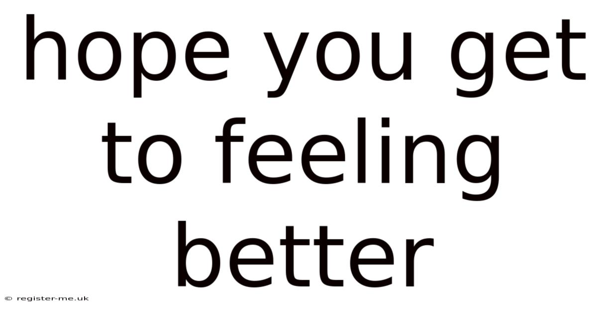 At the end of the day, the simple act of expressing hope for someone's recovery can have a profound impact. Plus, whether you are offering words of encouragement, providing practical support, or simply being present, your kindness can help someone feel seen, valued, and cared for. So, the next time someone you know is struggling, don't hesitate to let them know: "I hope you get to feeling better." Your message might be just the thing they need to keep going.