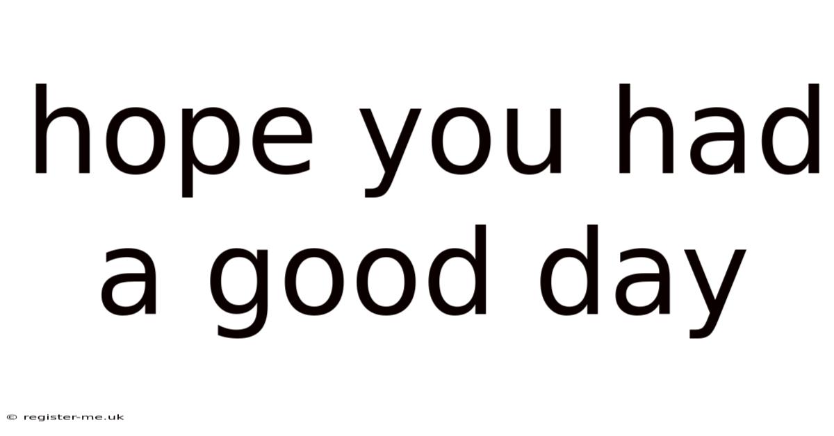 Language is rarely just a tool for conveying information; it is a framework that shapes how we perceive the world and our place in it. A phrase as simple as hope you had a good day may seem trivial in isolation, but its cumulative effect is anything but. By choosing to weave this small kindness into your daily interactions, you create tiny pockets of calm for others, steady your own stress response, and build a habit of noticing and naming positivity even in chaotic moments. It requires no extra time, no financial cost, and no grand preparation—only a moment of intention, repeated again and again. Over time, those moments add up to a fundamental shift in how you move through the world: from moving past others in a rush, to pausing, acknowledging, and wishing them well. That shift, more than any single interaction, is the true power of this unassuming phrase But it adds up..