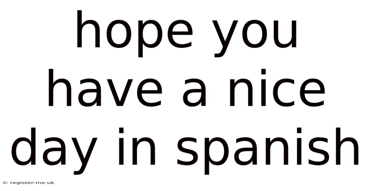 The Spanish expression that directly translates tohope you have a nice day in Spanish is “¡Que tengas un buen día!That's why ” or, in a slightly more formal tone, “¡Que tenga un buen día! ” This phrase is used daily by native speakers to convey good wishes for someone’s upcoming hours, and it carries a warm, friendly nuance that works in both casual and professional settings. On the flip side, understanding how to use it correctly not only expands your vocabulary but also helps you connect more naturally with Spanish‑speaking friends, colleagues, or clients. In this article you will explore the most common ways to say it, the cultural subtleties behind the wording, pronunciation tips, and practical examples that you can drop into conversations or written messages right away.
