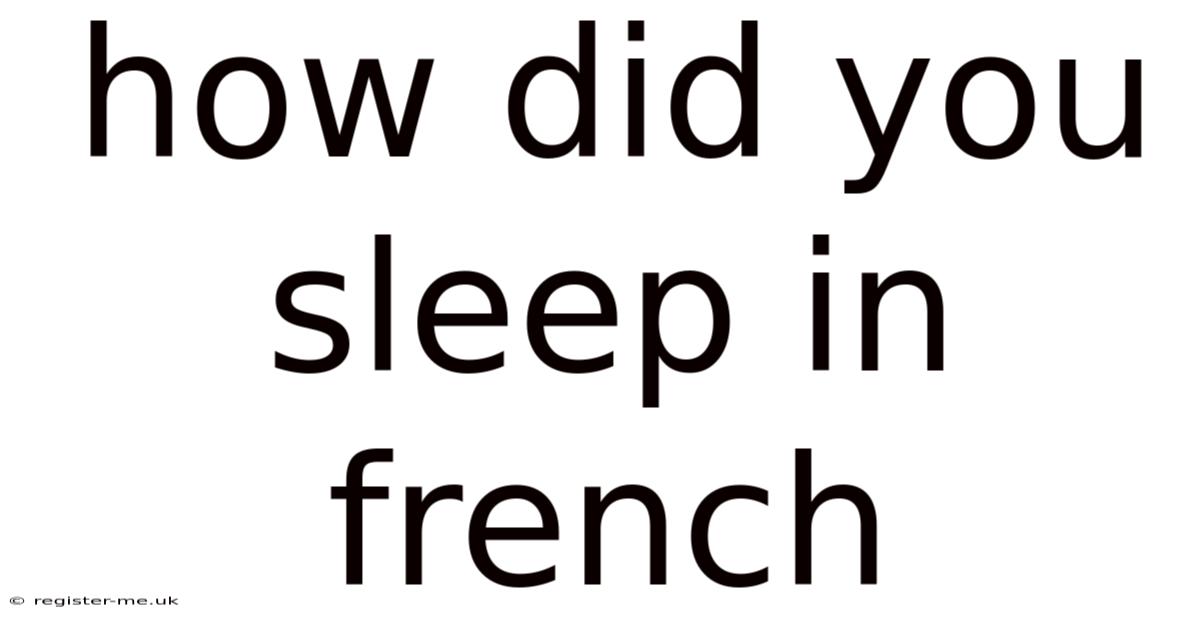 How Did You Sleep in French: A Complete Guide to Asking and Answering