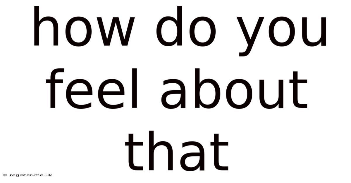 Feelings are complex and can be influenced by a myriad of factors, including personal experiences, cultural background, and the current context. The question "How do you feel about that?" is not just about identifying your emotional state; it's about exploring the depth of your reactions and understanding the underlying causes. This article walks through the intricacies of feeling, examining why we feel the way we do, how to interpret these feelings, and strategies for managing them And that's really what it comes down to. That alone is useful..
