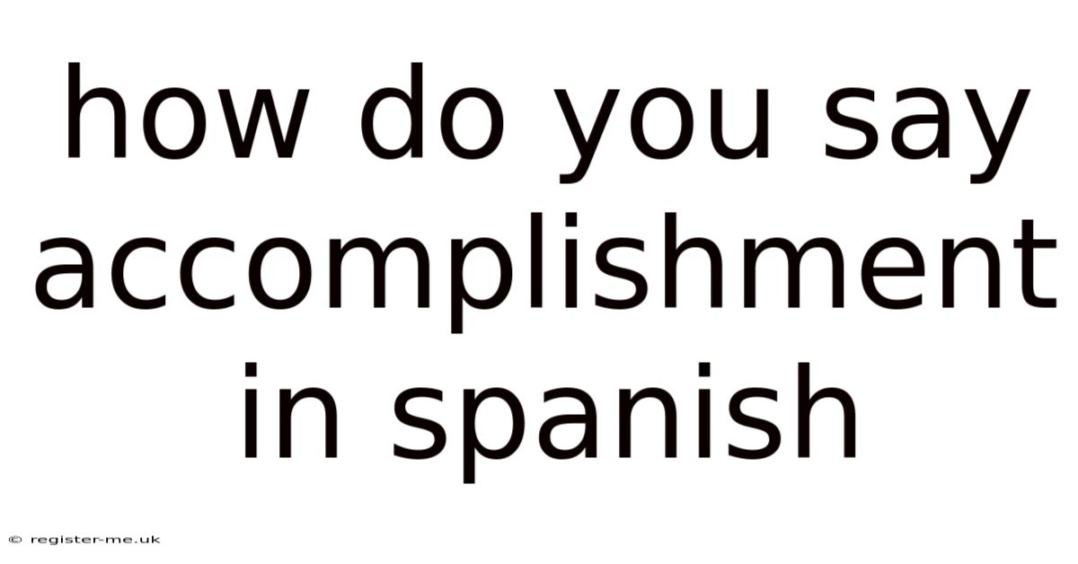 When learning a new language, one of the most rewarding milestones is discovering how to articulate complex human experiences, such as the feeling of achieving a goal. Day to day, if you are exploring how to say accomplishment in Spanish, you are not just looking for a single translation; you are delving into a culture that values orgullo (pride), éxito (success), and the deep satisfaction of a job well done. The Spanish language offers a rich vocabulary to describe this state, ranging from formal professional contexts to casual everyday conversations. This guide will dissect the various ways to express accomplishment, providing you with the linguistic tools to convey this powerful feeling accurately and with nuance No workaround needed..