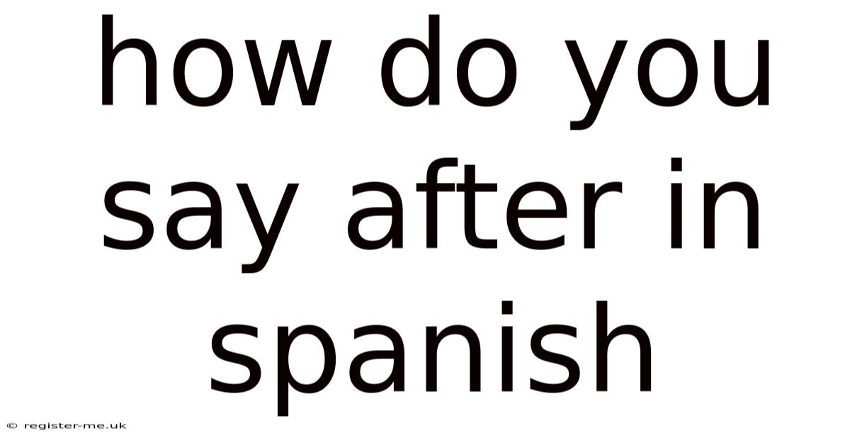 When we explore how to say "after" in Spanish, we must consider the context in which it appears. Even so, whether you are writing an essay, a lesson plan, or a personal reflection, the way we phrase time-related expressions can shape the meaning. Here's one way to look at it: in many Spanish-speaking cultures, the phrase "después" is commonly used to indicate a sequence of events. This makes it a natural choice when discussing actions that follow one another. Still, it’s important to recognize that Spanish has its own unique grammatical rules and vocabulary that may differ from English. Understanding these nuances helps see to it that your message resonates effectively with your audience Turns out it matters..
