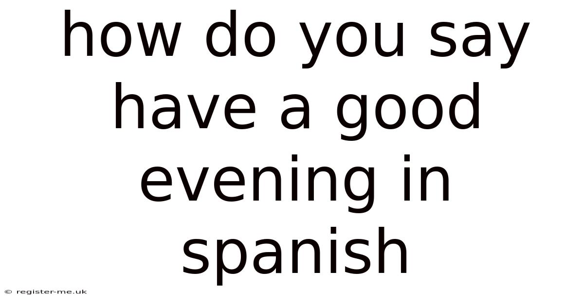 Understanding how to say "Have a good evening" in Spanish is a simple yet essential task for anyone looking to communicate effectively in Spanish-speaking environments. Here's the thing — whether you're traveling, studying, or simply conversing with native speakers, knowing the correct phrase can make a significant difference in your interactions. Let’s explore this topic in detail, ensuring you grasp not only the literal translation but also the cultural nuances behind it.