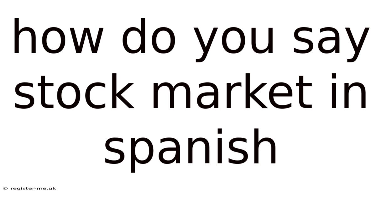 All in all, understanding how to say "stock market" in Spanish is more than just a linguistic exercise. It is a gateway to exploring the complexities of finance, the role of investment, and the impact on society. By grasping the term "mercado de valores" and its components, readers can enhance their financial literacy and make informed decisions. Whether you are a student, a professional, or simply a curious learner, this knowledge will serve you well in navigating the world of finance Surprisingly effective..