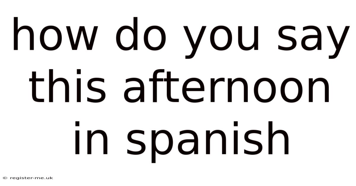 Understanding how to talk about time is one of the first and most crucial steps in learning any language. It’s the framework upon which we schedule our lives, make plans, and describe our days. When an English speaker asks, "how do you say this afternoon in Spanish?", the immediate answer is simple, but the full picture is rich with nuance, cultural context, and practical application that separates basic vocabulary from true conversational fluency. In real terms, the direct translation is esta tarde, but knowing when and how to use it—along with its close relatives like hoy por la tarde—is what truly empowers you to communicate naturally. This guide will move beyond the dictionary definition to explore the grammatical structures, cultural rhythms, and common pitfalls associated with expressing "this afternoon" in Spanish, ensuring you can use these phrases with confidence in any conversation Worth knowing..