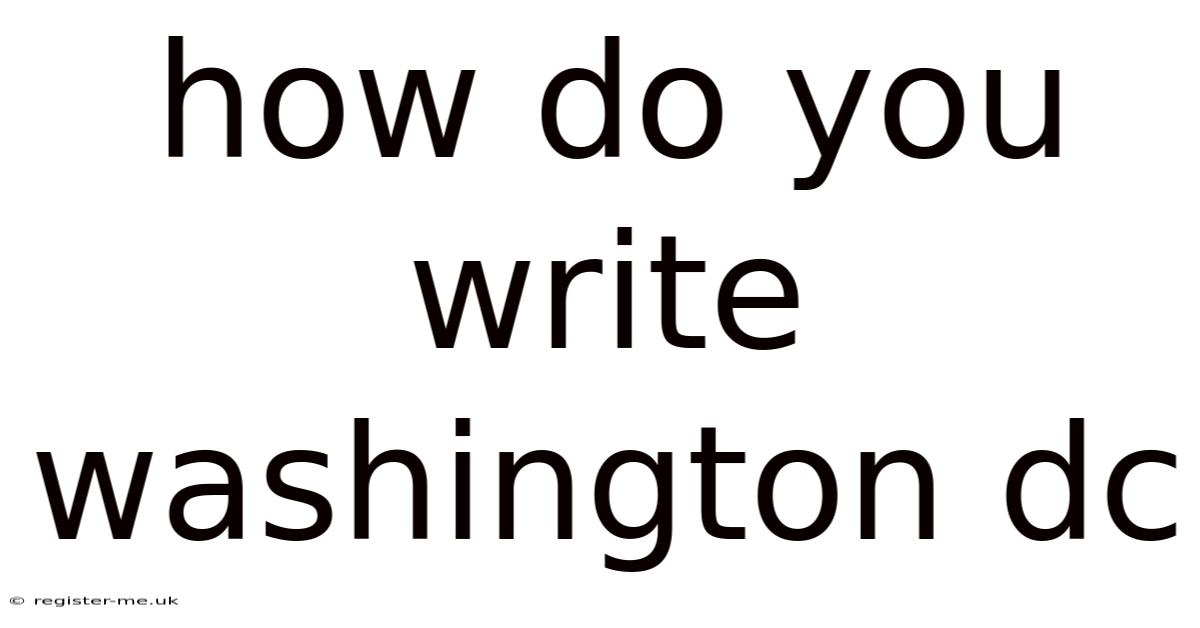 When writing addresses, the correct format is to use "Washington, DC" without periods, as this is the standard U.That said, s. Postal Service format. For example: "1600 Pennsylvania Avenue, Washington, DC 20500.