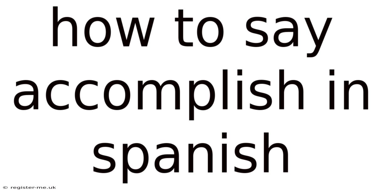 All in all, mastering the way to say "accomplish" in Spanish is a valuable skill that enhances your communication abilities. By understanding the appropriate verbs and their usage, you can convey your achievements with clarity and confidence. Whether you're writing a report, speaking in a meeting, or simply sharing your experiences, using the right words will make your message more impactful. Practically speaking, remember, the key is to practice consistently and apply these concepts in real-life situations. With time and effort, you'll find that expressing success in Spanish becomes second nature, opening up new opportunities for you Turns out it matters..