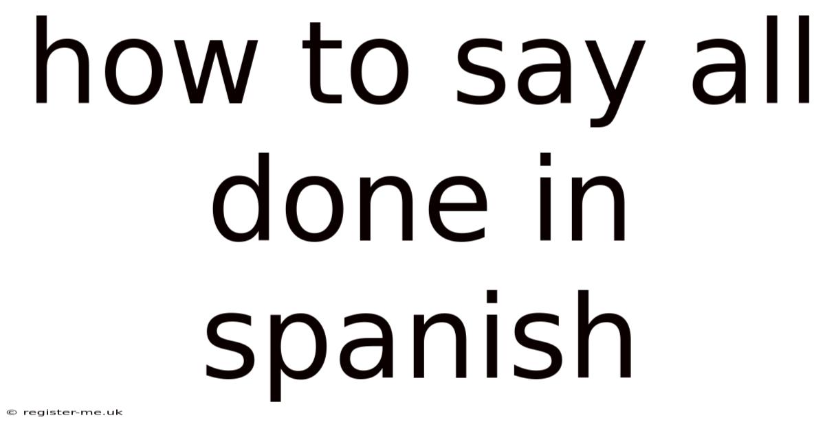 Mastering how to say "all done" in Spanish isn't just about knowing a single phrase. It's about understanding the subtle nuances of language and adapting your expression to the context, your audience, and the specific situation. Also, by expanding your vocabulary beyond "ya está" and considering regional variations, you can communicate with greater confidence and fluency. Embrace these alternative expressions, practice their pronunciation, and you'll be well on your way to sounding like a native Spanish speaker. So, the next time you're finished with a task, don't just say "ya está" – choose the perfect phrase to truly convey your sense of completion!
