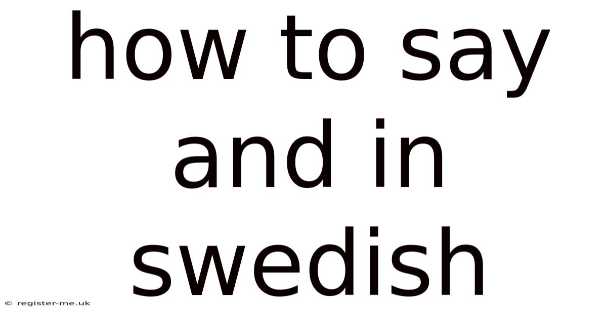 Understanding how to say and in Swedish is fundamental for anyone learning the language, as this simple conjunction serves as the primary glue connecting words, phrases, and clauses. But while the English word "and" appears straightforward, its Swedish counterpart, och, comes with nuances regarding pronunciation, usage in different contexts, and formal variations that are essential for fluent communication. This guide delves deep into the mechanics of och, exploring its pronunciation, grammatical rules, common pitfalls, and practical examples to ensure you can integrate this vital word smoothly into your Swedish speech and writing The details matter here. Turns out it matters..