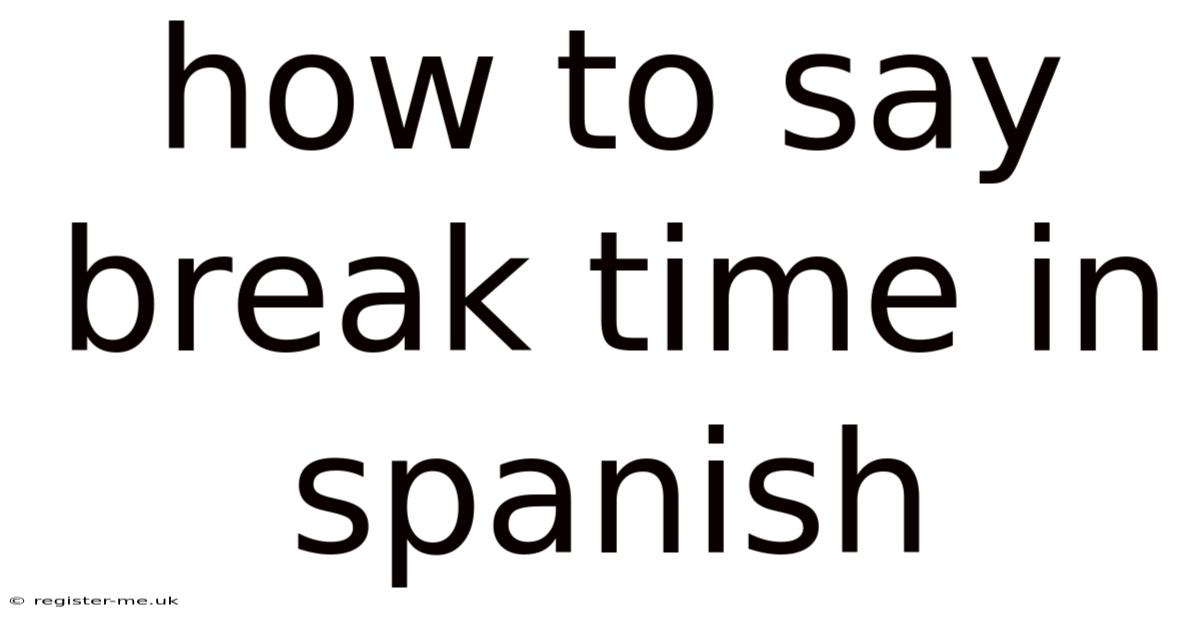 In the bustling environment of a Spanish-speakingworkplace, school, or even a casual gathering, the concept of a break is universally understood, though the specific terminology can vary significantly across regions. Which means knowing how to express "break time" accurately is essential for clear communication, whether you're requesting a pause, announcing one, or simply inquiring about the schedule. This guide gets into the most common and contextually appropriate ways to convey this idea in Spanish, moving beyond a simple dictionary translation to understand usage nuances and regional preferences Worth keeping that in mind..