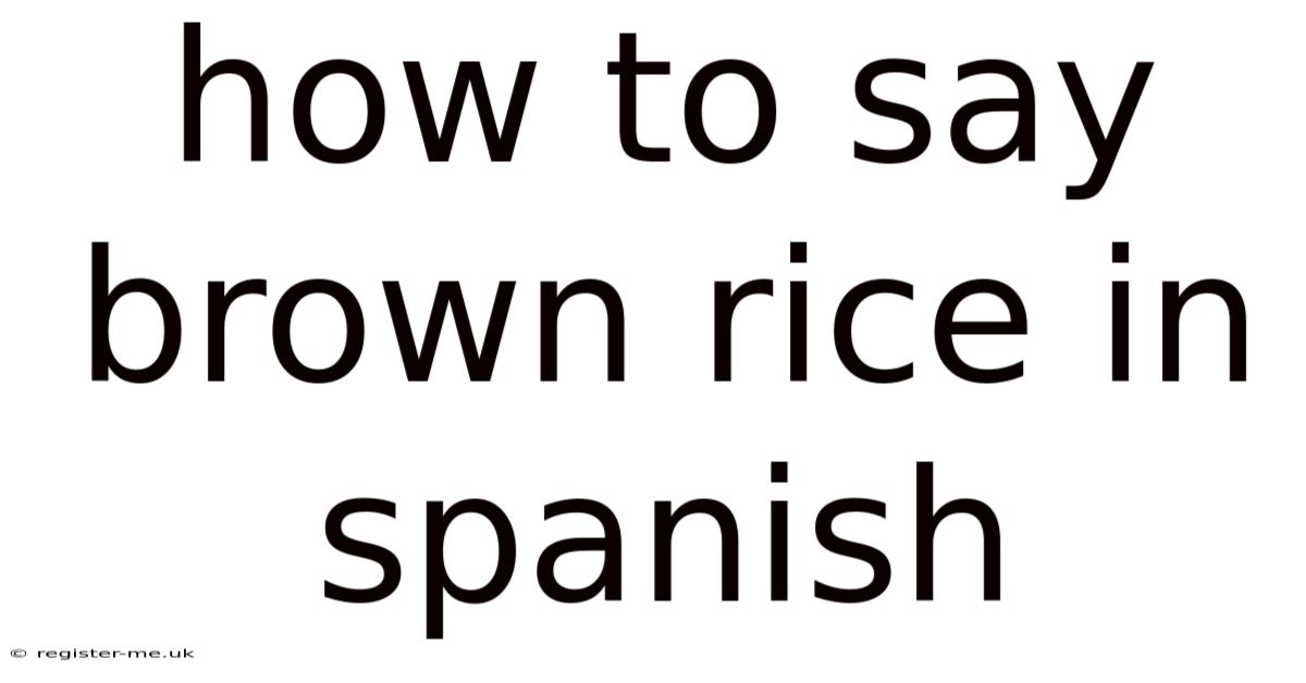 ##How to Say Brown Rice in Spanish: A Complete Guide