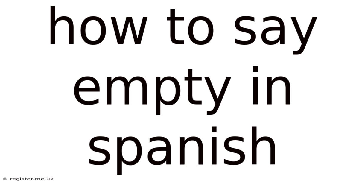 Saying "empty" in Spanish is not just about translating the word vacío. Depending on the context, you might use desocupado, libre, sin contenido, or en blanco. Plus, understanding these nuances will help you communicate more effectively in Spanish, whether you're describing a physical space, a schedule, or an emotional state. Remember to pay attention to gender and number agreement when using adjectives, and don't be afraid to use these words in everyday conversations to sound more natural and fluent.