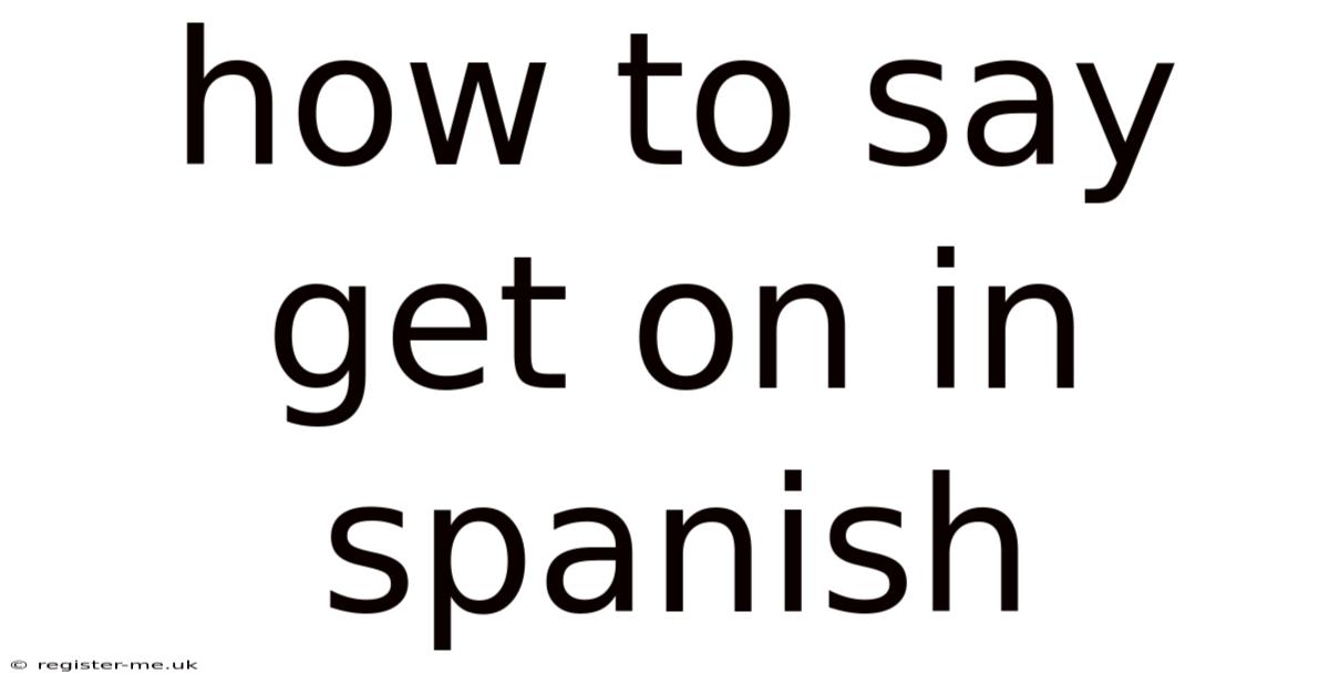 Understanding how to say "get on" in Spanish is a crucial step for anyone looking to communicate effectively in Spanish-speaking environments. Whether you're traveling, working in a bilingual setting, or simply expanding your language skills, mastering this phrase can open doors to meaningful conversations. In this article, we will explore the various ways to express "get on" in Spanish, the nuances behind these expressions, and practical tips to help you use them confidently The details matter here..
