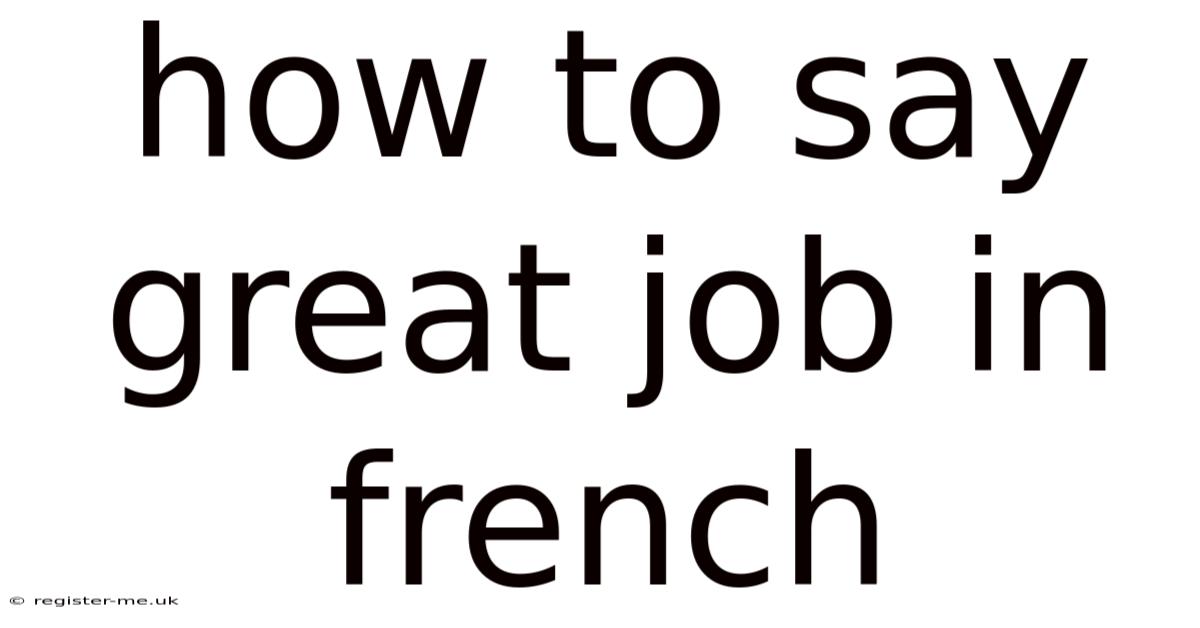 Knowing how to say "great job" in French is more than just learning a phrase—it’s about understanding the nuances of encouragement and motivation in one of the world’s most romantic languages. Consider this: whether you're praising a colleague, a friend, or a student, the right expression can make your words feel genuine and impactful. This article explores various ways to convey appreciation in French, along with cultural insights and practical examples to help you use these expressions confidently Simple, but easy to overlook..