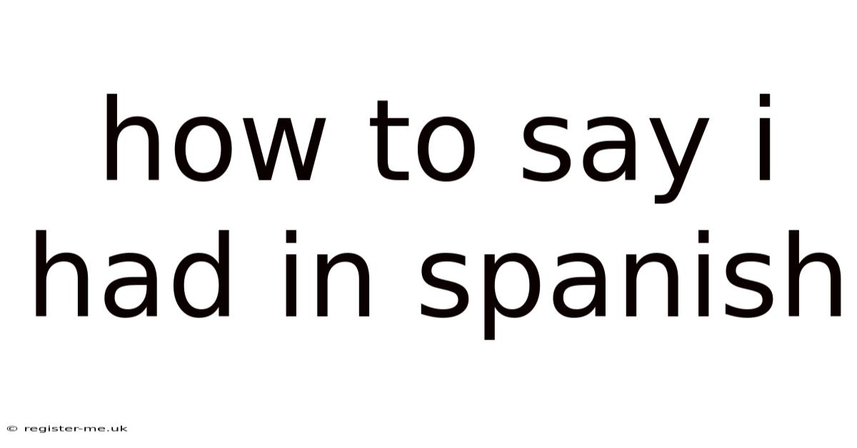 Understanding how to say "I had" in Spanish is a fundamental step in moving beyond basic present tense conversations and into the rich world of narrating past events. At first glance, it seems simple: "I had" translates directly to "yo tuve.Even so, " On the flip side, this is only one piece of a much larger and more nuanced puzzle. Here's the thing — the true meaning of "I had" in English—whether it expresses possession, an experience, or an action completed before another past event—determines which Spanish verb and tense you must use. Worth adding: mastering this distinction is what separates a beginner from a confident Spanish speaker. This guide will dismantle the confusion, providing you with a clear, actionable framework to use "I had" correctly in any Spanish context The details matter here..