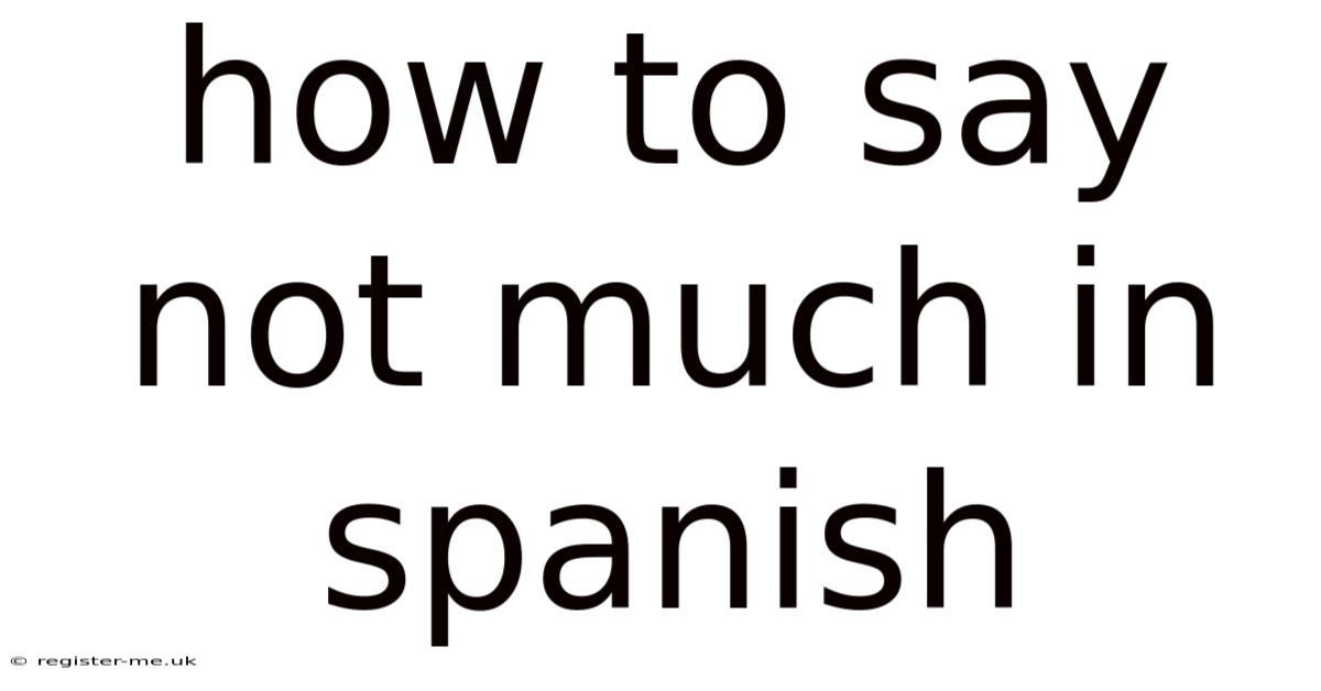 When you’re chatting with a Spanish‑speaking friend or answering a casual question like “How are you?” the response “Not much” is a common, laid‑back reply in English. In Spanish, the equivalent phrase can vary depending on context, region, and the level of formality. This guide will walk you through the most natural ways to express “not much” in Spanish, explain the subtleties behind each option, and give you practical examples to help you sound confident and authentic That's the part that actually makes a difference..