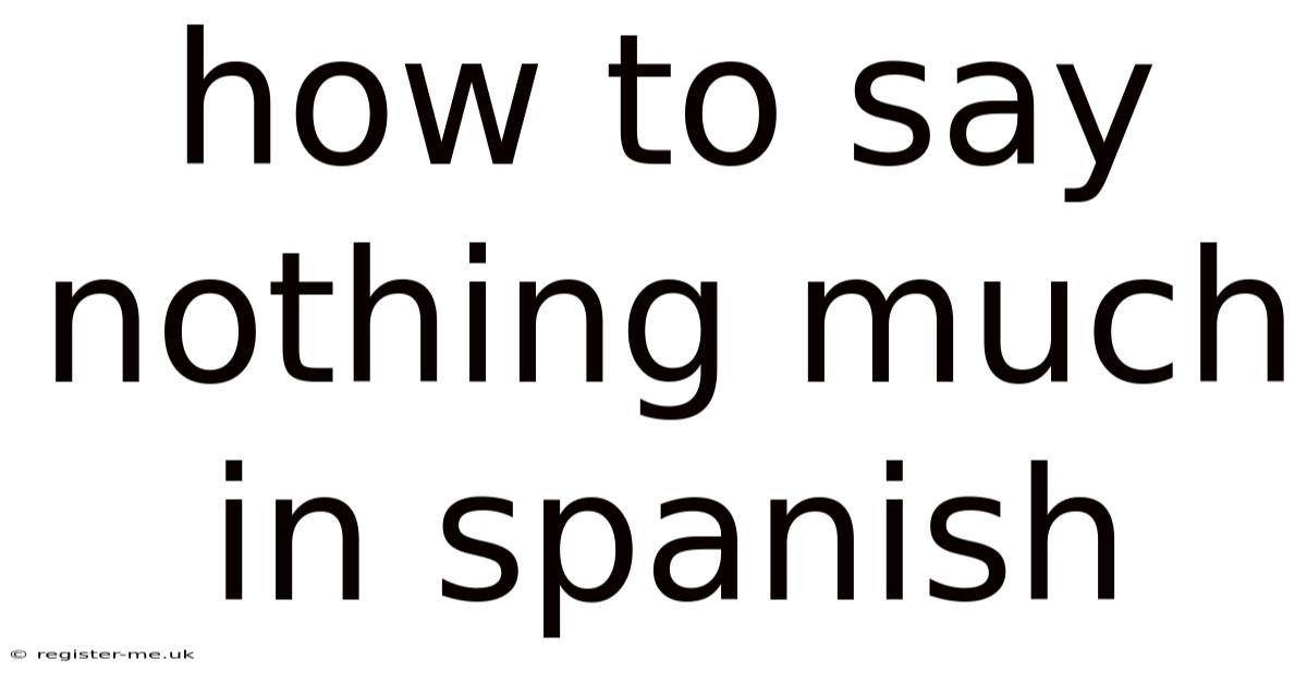 Understanding how to say "nothing much" in Spanish is a crucial skill for anyone looking to communicate effectively in a Spanish-speaking environment. This phrase is often used when someone wants to convey that they are not providing much information or detail. In this article, we will explore the nuances of this expression, its usage, and how to incorporate it naturally into your conversations.