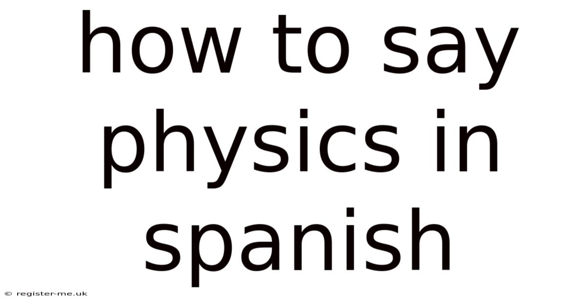 Learning how to say "physics" in Spanish is more than just memorizing a word; it’s about understanding its usage, pronunciation, and context. The term "física" is a gateway to a broader understanding of science and language. Whether you’re a student, a teacher, or a curious learner, mastering this term can enhance your communication and deepen your appreciation for both physics and the Spanish language Simple as that..