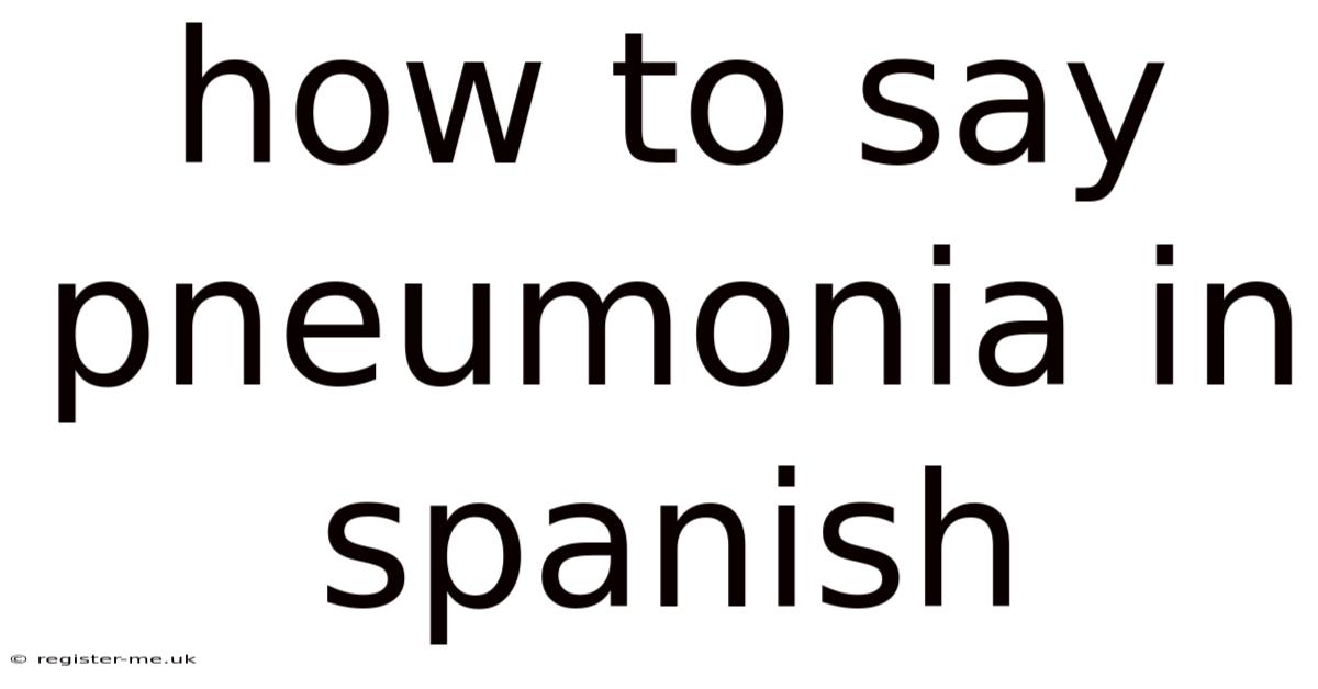 Learning how to say pneumonia in Spanish is a practical and often essential skill for travelers, healthcare workers, students, and bilingual families navigating medical situations. Even so, the direct translation is neumonía, a term that carries precise pronunciation rules and clinical relevance across Spanish-speaking regions. Mastering this vocabulary not only bridges language gaps during health emergencies but also builds a foundation for broader medical communication. Whether you are preparing for a trip abroad, supporting Spanish-speaking patients, or expanding your language proficiency, understanding how to say pneumonia in Spanish equips you with clarity, confidence, and cultural awareness when it matters most And that's really what it comes down to..
