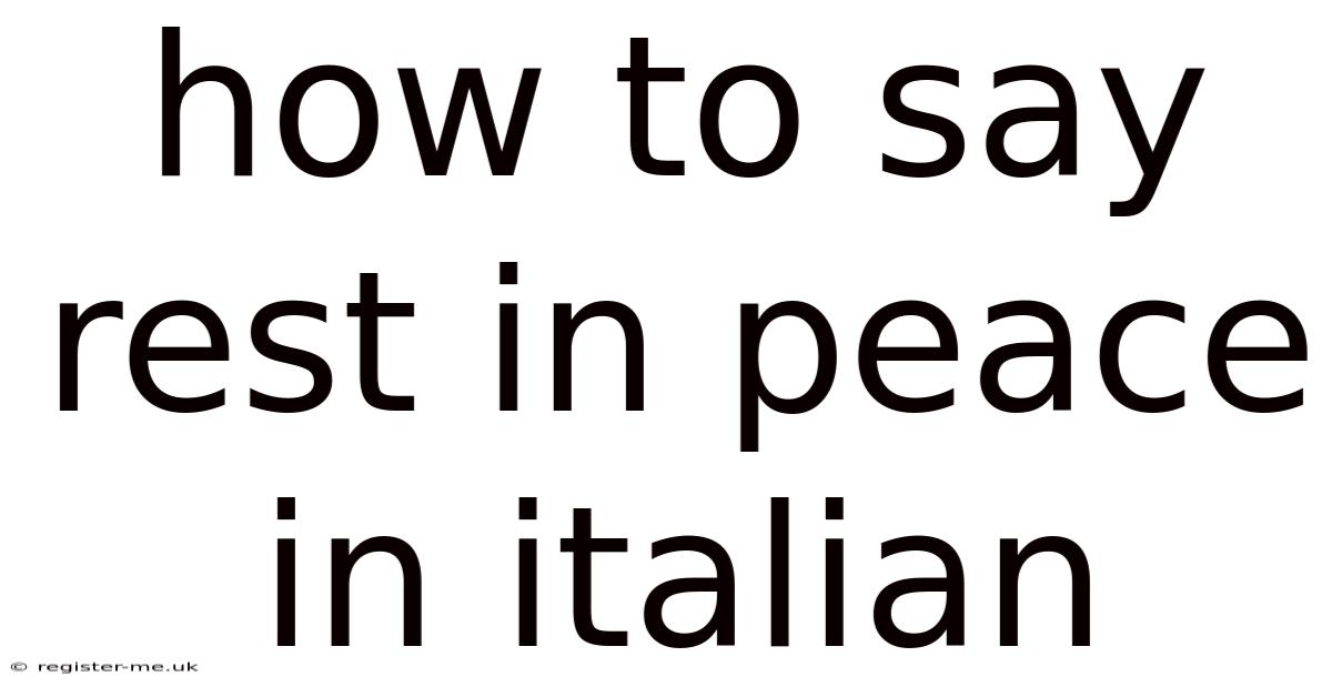 Losing someone we love is never easy. In Italian culture, where family and tradition hold deep meaning, the way we express these sentiments is especially significant. When someone passes away, we often look for words that can express our sorrow, respect, and prayers for their peaceful journey. In real terms, in many cultures, offering condolences is an important way to show empathy and solidarity with grieving families. Knowing how to say "rest in peace" in Italian is not just about translating words—it's about honoring a person's memory in a heartfelt and culturally appropriate way Simple, but easy to overlook..