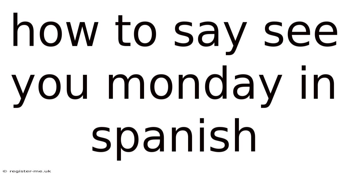 The short version: saying "See you Monday" in Spanish is a straightforward task, but it requires attention to detail and an understanding of the language’s nuances. By choosing the right phrase and practicing its usage, you can enhance your communication skills and build stronger relationships. Whether you're in a professional environment or a personal setting, mastering this expression will go a long way in ensuring that your message is received as intended.