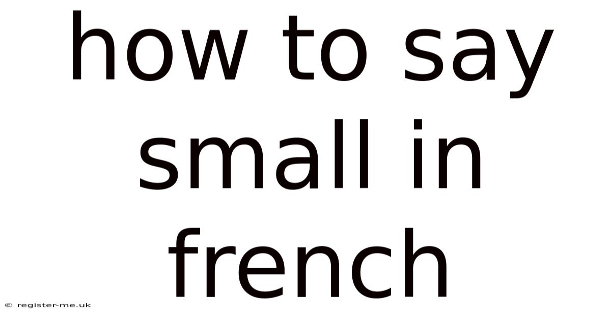 Understanding how to say "small" in French is a fundamental step for anyone looking to communicate effectively in the language. Whether you are traveling, studying, or simply conversing with native speakers, knowing the right words can make a big difference. In this article, we will explore the various ways to express the concept of "small" in French, the nuances of its usage, and practical tips to help you master this essential vocabulary And it works..