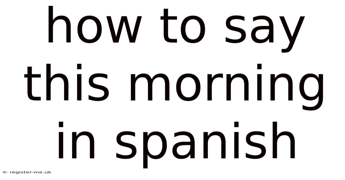 The journey from a literal translation to a culturally attuned expression reveals that language is never merely a conduit for information; it is a living tapestry woven from history, geography, and shared experience. By delving into the myriad ways Spanish speakers convey “this morning,” we gain insight into the subtle interplay between grammar and culture, and we equip ourselves with a more nuanced, empathetic means of communication. Whether you are drafting a personal journal, crafting a professional email, or simply sharing a morning ritual with a friend, choosing the right phrasing can transform a mundane statement into a vivid, resonant glimpse into the heart of a new day.