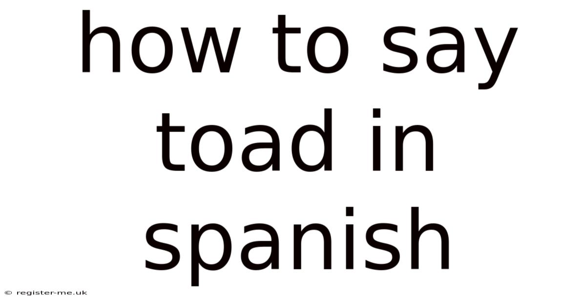 Thephrase how to say toad in Spanish is frequently searched by beginners who want to expand their wildlife vocabulary. Worth adding: in Spanish, the direct translation for “toad” is sapo, though regional variations and contextual nuances can affect usage. This guide will walk you through the exact translation, pronunciation tips, cultural notes, and common mistakes to avoid, ensuring you master the term with confidence Easy to understand, harder to ignore. That's the whole idea..
