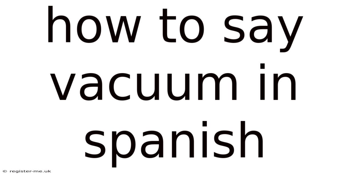 Understanding how to say "vacuum" in Spanish is a simple yet important task for anyone looking to communicate effectively in Spanish-speaking environments. In Spanish, this concept is expressed using specific vocabulary that captures both the mechanical and linguistic aspects of the action. Worth adding: the word "vacuum" in English refers to the process of removing air or other gases from a space, often using a device with a fan and a suction mechanism. Whether you're traveling, working in a bilingual setting, or simply curious about language nuances, knowing the correct translation can make a big difference. Let’s explore how to say "vacuum" in Spanish, why it matters, and how to use it confidently in daily conversations.
