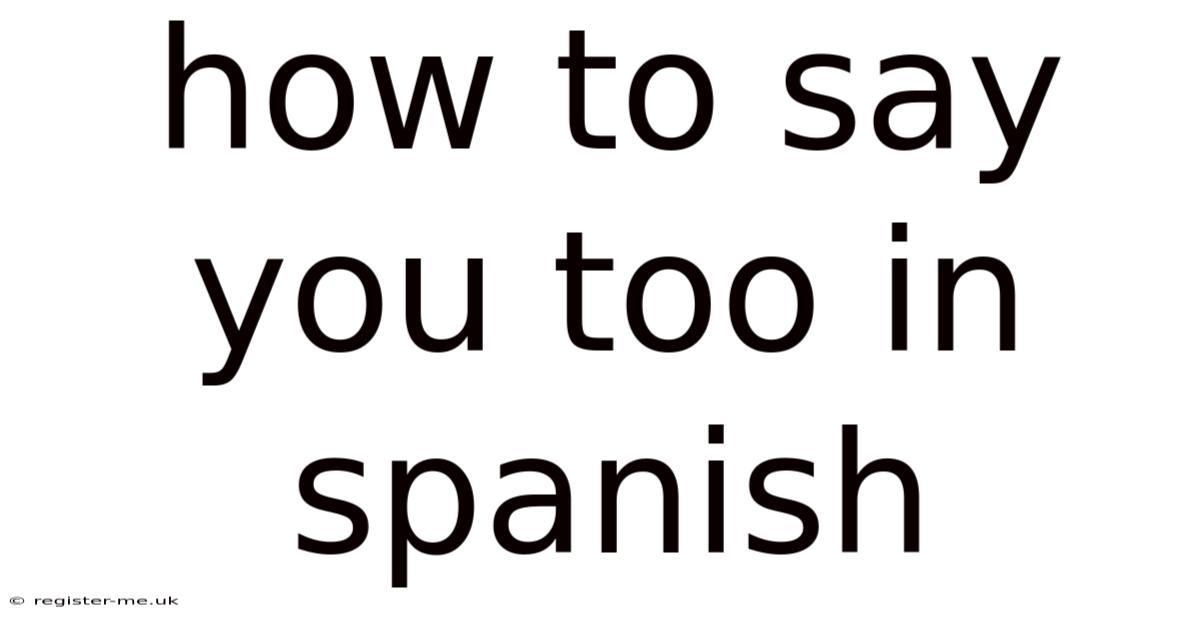 Understanding how to say "you too" in Spanish is more than just a linguistic exercise—it's about building connections and fostering understanding. By mastering this phrase and its variations, you'll enhance your communication abilities and gain a deeper appreciation for the richness of the Spanish language. Whether you're learning for personal growth or professional development, this skill is a valuable addition to your toolkit Not complicated — just consistent..