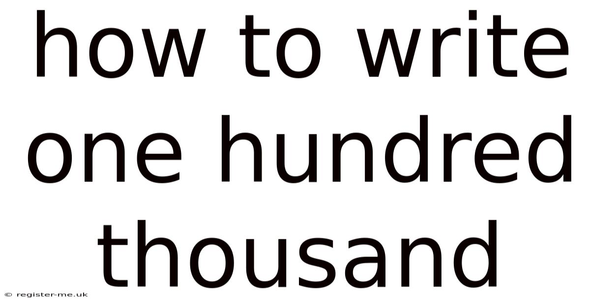 Mastering how to write one hundred thousand correctly is a fundamental skill that serves you well in both personal and professional communication. Remember the key points: spell it as one hundred thousand in formal writing, use 100,000 for numerical representation, and choose the appropriate format based on your context and audience Worth knowing..
