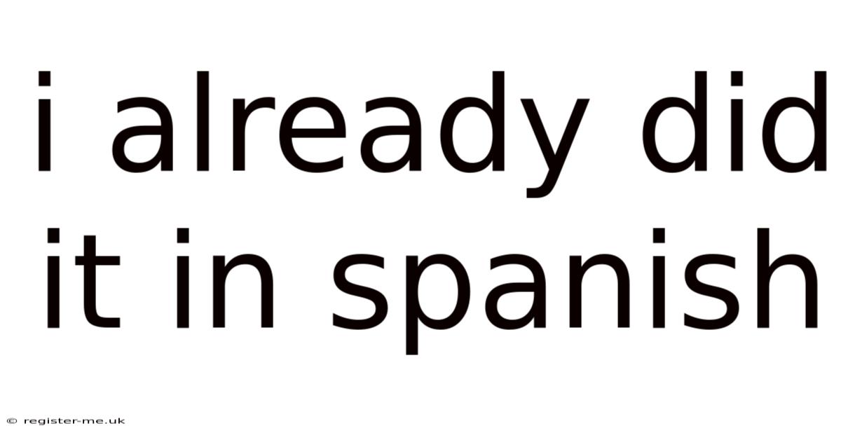 The phrase "I already did it" is a common expression used to convey that a task or action has been completed. In Spanish, this phrase is translated to "Ya lo hice." Understanding how to express this idea in Spanish can be useful for individuals looking to improve their language skills, whether for travel, work, or personal enrichment. This article will break down the various ways to express the concept of having already completed an action in Spanish, exploring the grammar, vocabulary, and cultural context that surrounds this phrase.